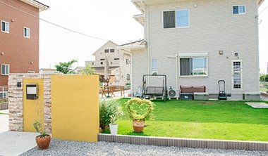 子どもとキャッチボールをしたり、愛犬が駆け回ったり、海外の庭のようで憧れますね。天然の芝は水やりや芝刈りなどお手入れも大変ですが、人工芝であれば一年中枯れることもなく、青々とした芝の庭が実現します。庭だけでなく、ウッドデッキやベランダ、玄関周りやアプローチまで、外構のさまざまな空間で活躍するでしょう。