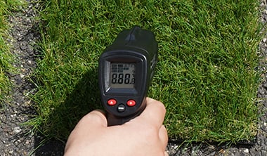 夏場でも表面温度は上がりにくい 天然芝を含むほとんどの植物は、体内の水分を水蒸気として外に発散する「蒸散」を行っています。水は液体から気体に変化する時に周囲から熱を奪う性質があるため、天然芝の表面温度は上がりにくくなります。