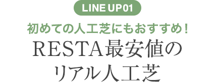 低コストで抑えたい方はこちらがおすすめ!RESTA最安値の人工芝です。20mm丈の短めパイルは35mmに比べてクッション性は劣りますが、お手入れが簡単なのが魅力!