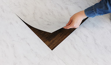 - ピールアップボンドで施工するので、簡単に剥がすことができ、再接着も可能です。汚れた部分だけを剥がして新しいフロアタイルを貼り直すなど、メンテナンスやレイアウト変更に自在に対応できます!