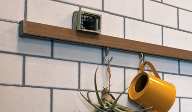 どんな場所にもあわせやすい、定番のホワイトカラー。白い壁紙への取付けなら、レール自体を目立たせず、お気に入りの雑貨達を引き立ててくれます。