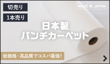 パンチカーペットとは不織布で出来たロール状のカーペットのことで、ハサミやカッターで簡単にカットすることができます。耐久性の高いパンチカーペットは、土足でも使用することができるため、イベント等の床の装飾材、養生材として用いられます。ラグカーペットやタイルカーペットに比べ価格が安いのも特長です。
