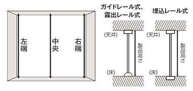 取付け開口部の幅を3か所(天井面・中央・床面)を採寸し、その中で最も大きい寸法をご指定下さい。