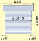 製品タイプや操作方法により、生地幅寸法は製品幅寸法よりも短くなり、右図のイラストの様に隙間ができますので採寸時にはご注意ください。詳しい寸法は各製品タイプの仕様をご確認ください。