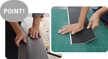 PVC床材は、柔らかい塩ビ素材です。楽に折り曲げる事ができ、割れや欠けが起こりにくく扱いやすい床材です。