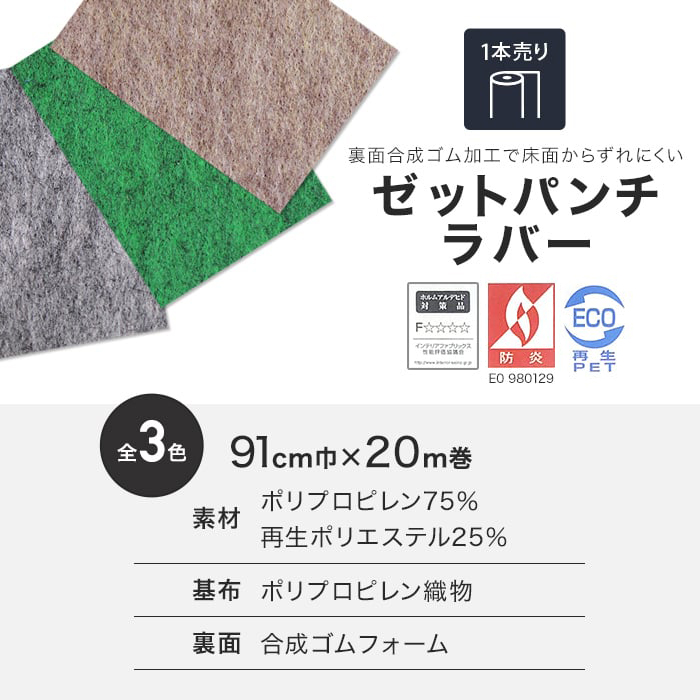 【個人様向け】パンチカーペット ゼットパンチラバー 91cm巾×20m巻【1本売】