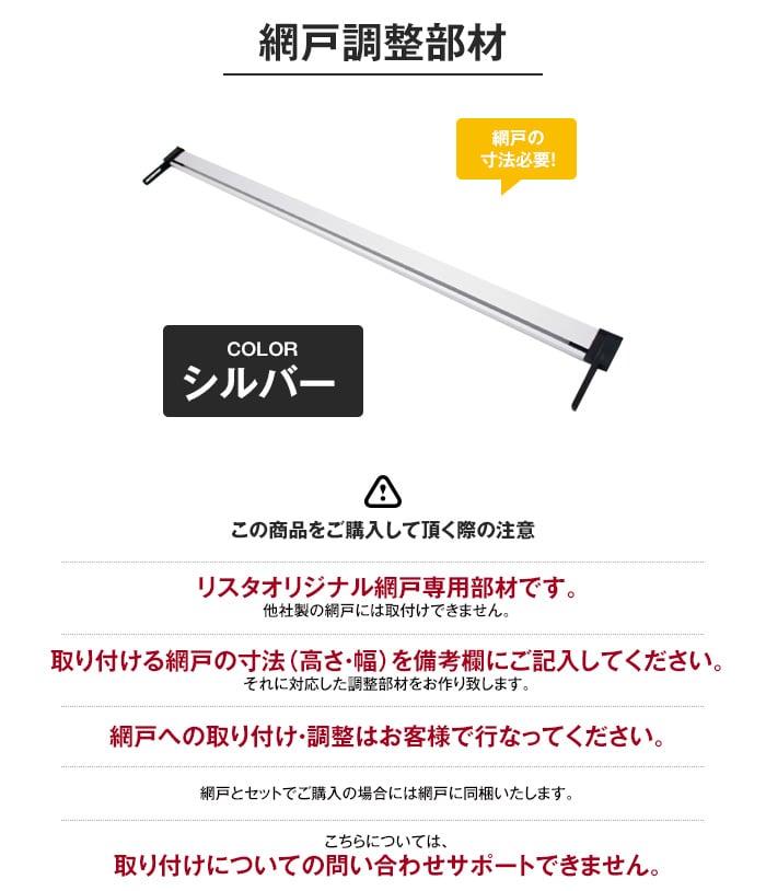 リスタオリジナル網戸専用部材です。他社製の網戸には取付けできません。