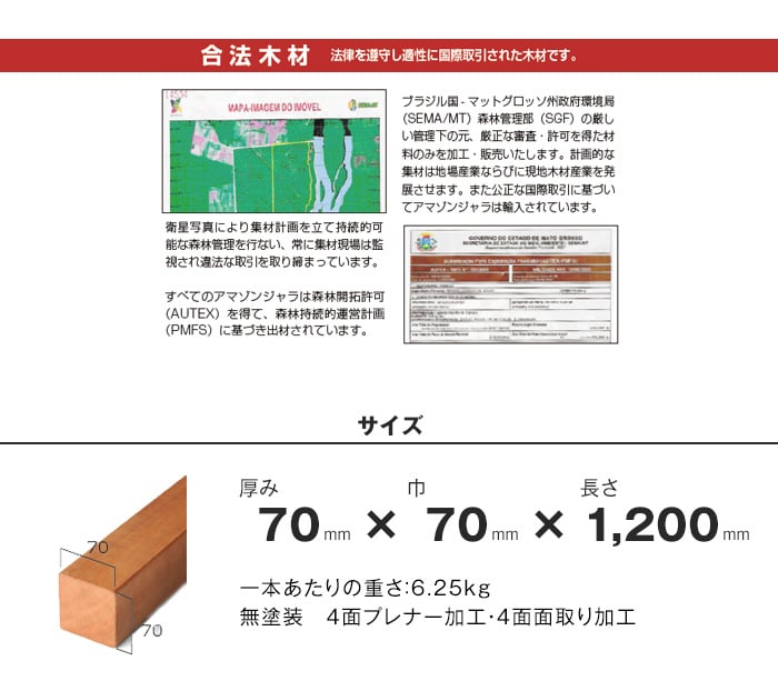 ウッドデッキ マニルカラ(アマゾンジャラ) 無塗装 70×70×1200