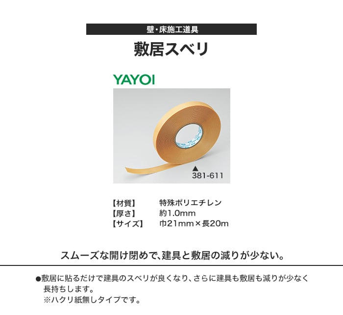 敷居に貼るだけで建具のスベリが良くなり、さらに建具も敷居も減りが少なく長持ちします。
