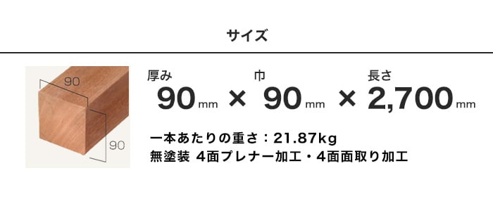 ウッドデッキ ウリン 無塗装 90×90×2700