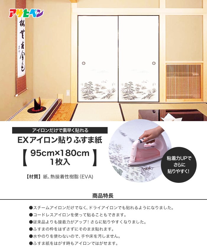 接着力がアップ!さらに貼りやすくなった EXアイロン貼りふすま紙/95×180cm