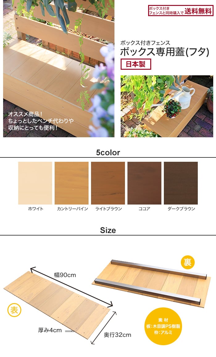ボックス付きフェンス ボックス専用 蓋(フタ) 90cm×32cm