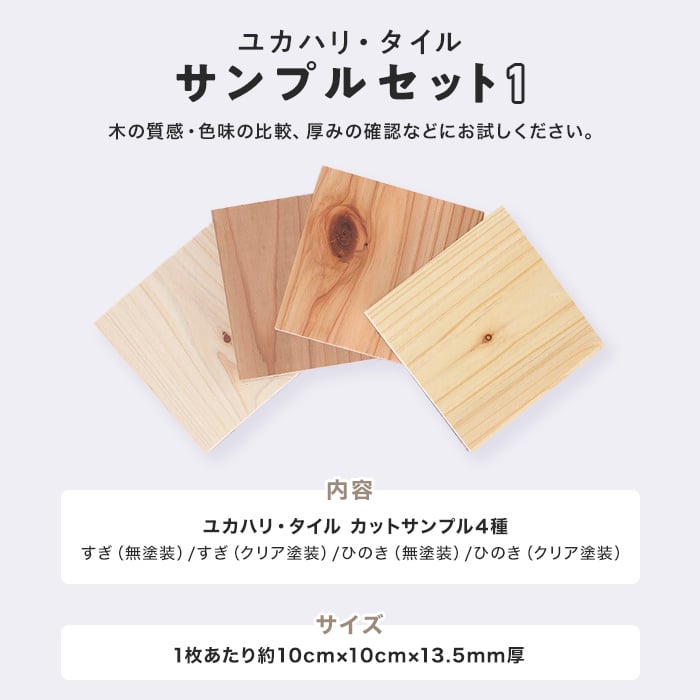 ユカハリ・タイル サンプルセット1 無塗装・クリア すぎ/ひのき