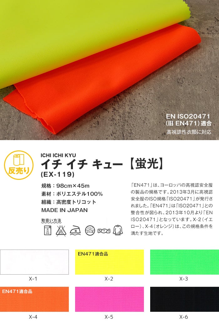 【蛍光】高視認性EN ISO20471適合 イチイチキュー 98cm巾 P100% (45m/反) EX-119
