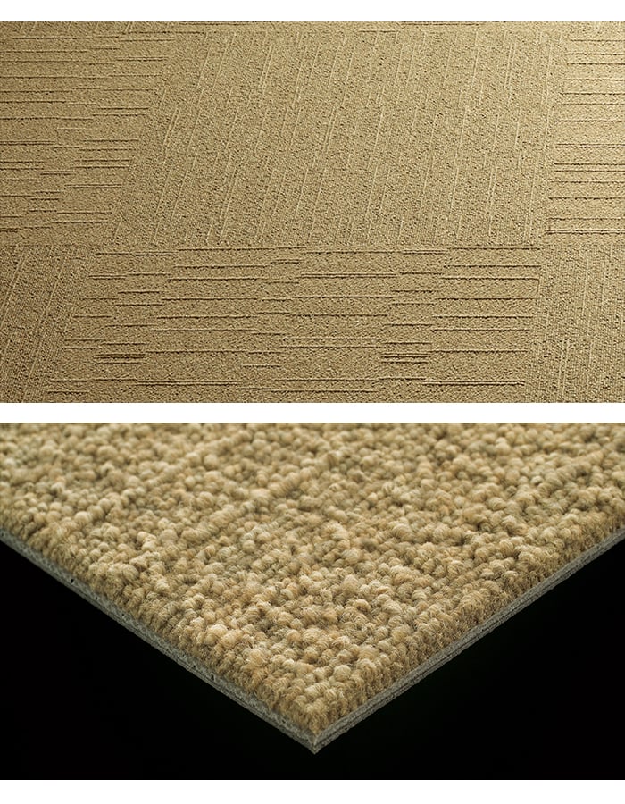 再生ポリエステル「スミトロン (R)」(ペットボトル由来)を使用したタイルカーペット。