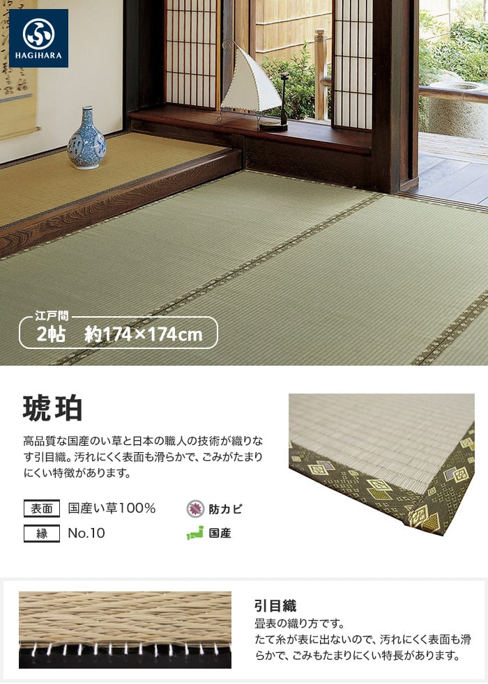 萩原 国産上敷 琥珀(こはく) 江戸間 2帖(約174×174cm)