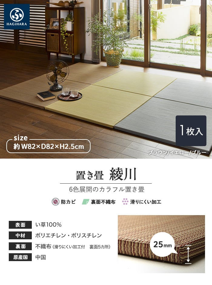 HAGIHARA い草ラグ 置き畳 綾川 約82×82×2.5cm 約半畳 1枚入