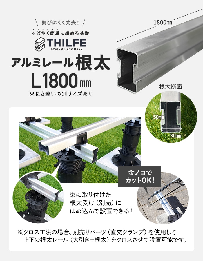 DIYショップ RESTA > ウッドデッキ・その他 > ウッドデッキ・その他全商品一覧 > 人工木ウッドデッキ > 基礎システム THILFE > 単品部材 > アルミ根太