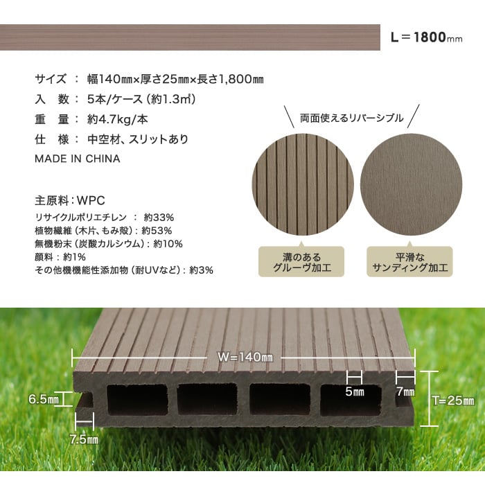 【旧規格】【5本セット】激安!人工木ウッドデッキ RESIN WOOD スタンダード 床板 W140mm