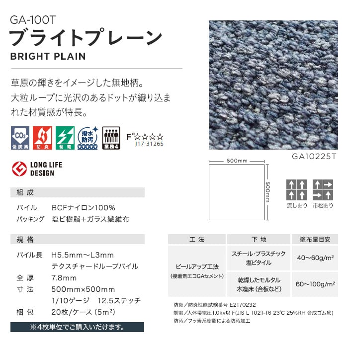 タイルカーペット 50×50 東リ GA-100T ブライトプレーン 4枚単位