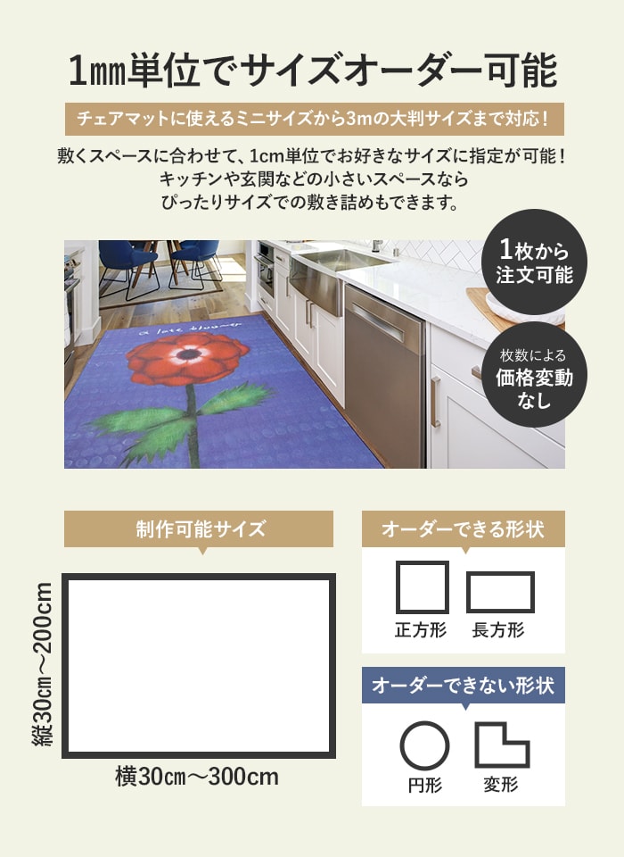 オリジナルプリントカーペット 1cm単位サイズオーダー フルカラー全面プリント 1枚から発注可能