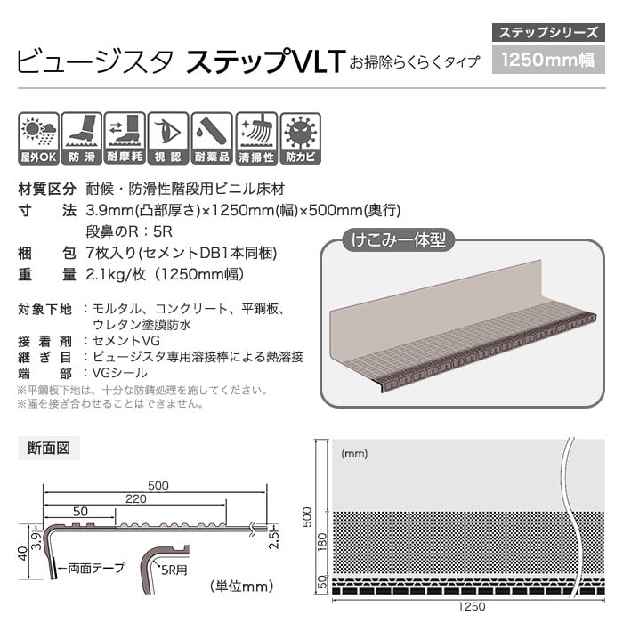 タジマ 階段用 ノンスリップシート ビュージスタ ステップVLT お掃除らくらく けこみ一体型 1250mm巾