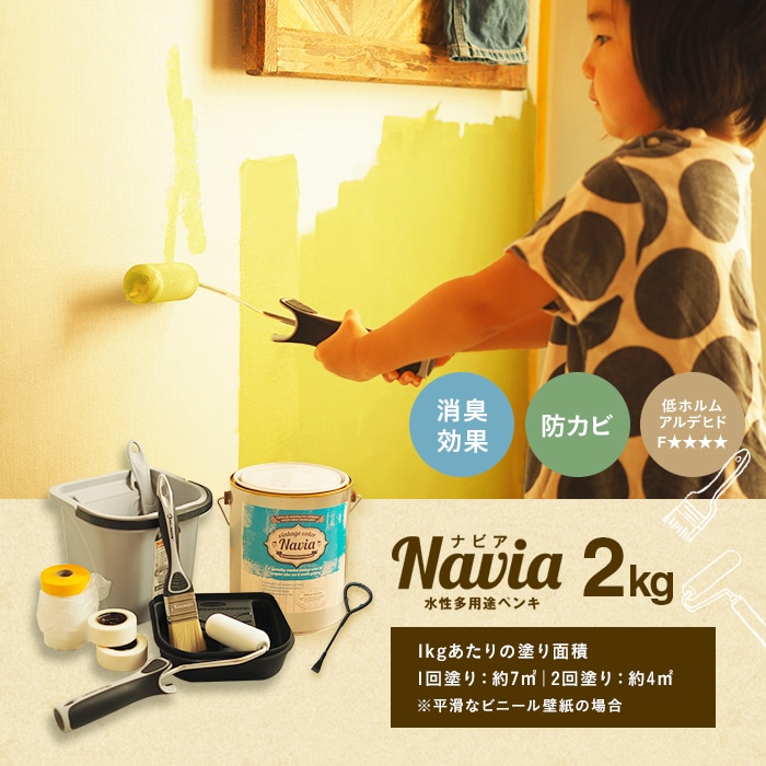 塗りやすくきれいに仕上がるDIY向け水性塗料Naviaの道具付きセットです。イエロー系のカラーをラインナップ!