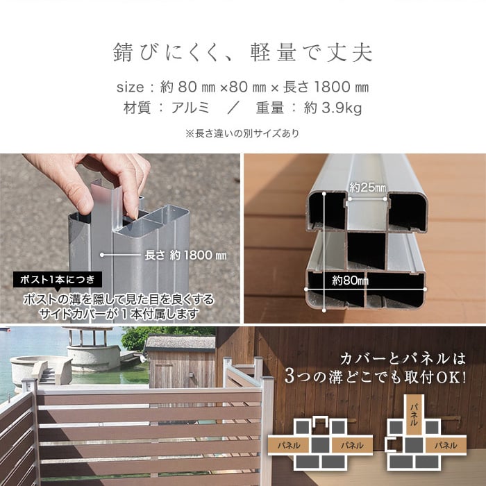 人工木フェンス RESTA RESIN WOOD FENCE ポストサイドカバー1800