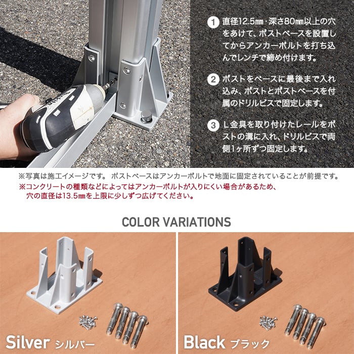 人工木フェンス RESTA RESIN WOOD FENCE ポストベース(アンカー、ビス付属)