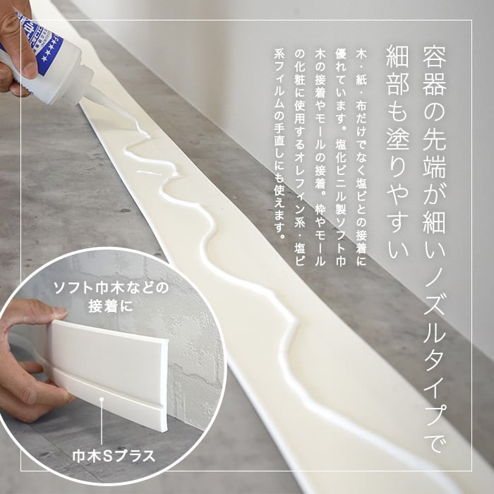 ソフト巾木やモールの接着、塩ビ系フィルムの手直しに。