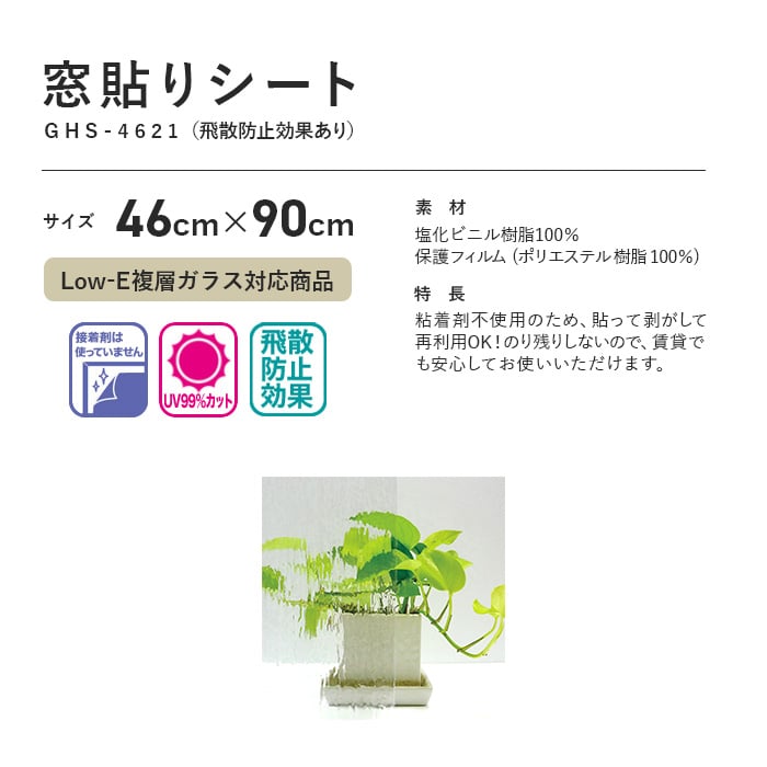 貼ってはがせるガラスフィルム LOW-E複層ガラス対応 GHS-4621 46cm×90cm
