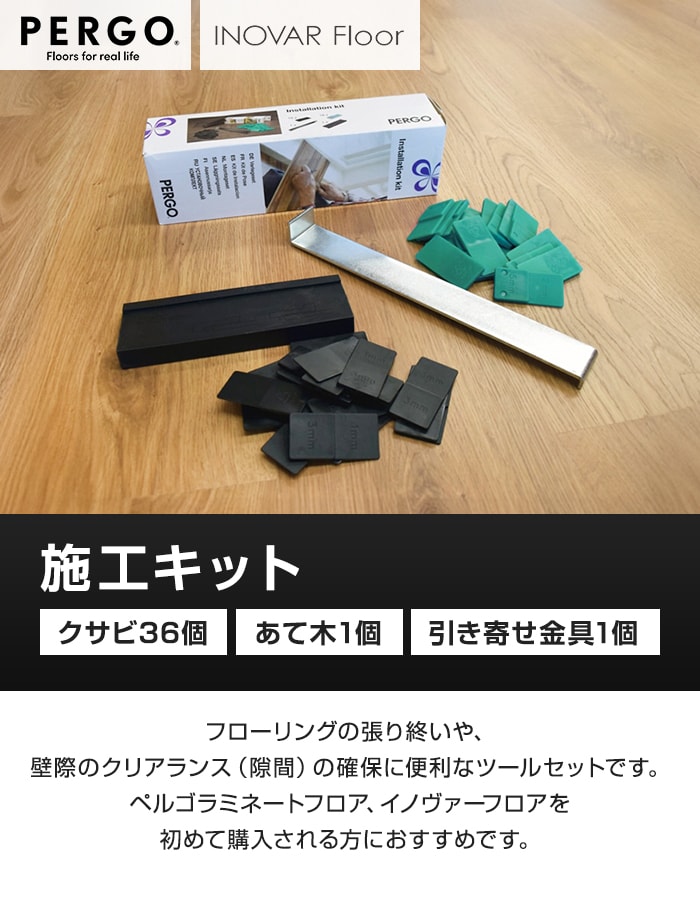 イノヴァーフロア・ペルゴフロアを施工するための道具がセットになった便利な商品です。
