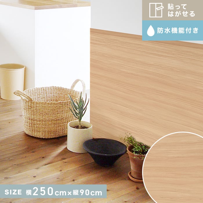 貼ってはがせるリノベウォールシート(よこ貼り) 腰壁 一枚板 横250cm×縦90cm