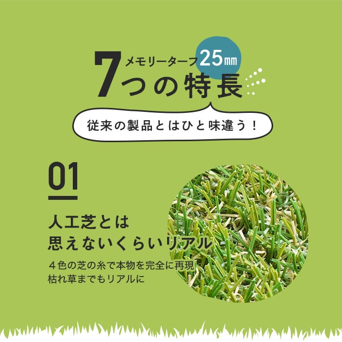 高機能&つぶれにくい!形状記憶リアル人工芝 メモリーターフ 25mm丈 (1m×10m)
