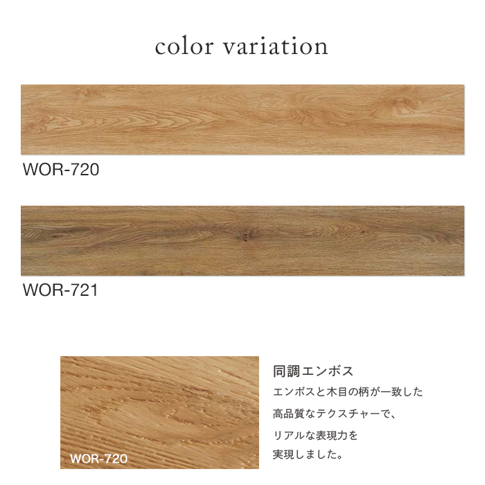 シンクロオークは、エンボス(凹凸)と木目が一致したよりリアルな同調エンボス仕様です。