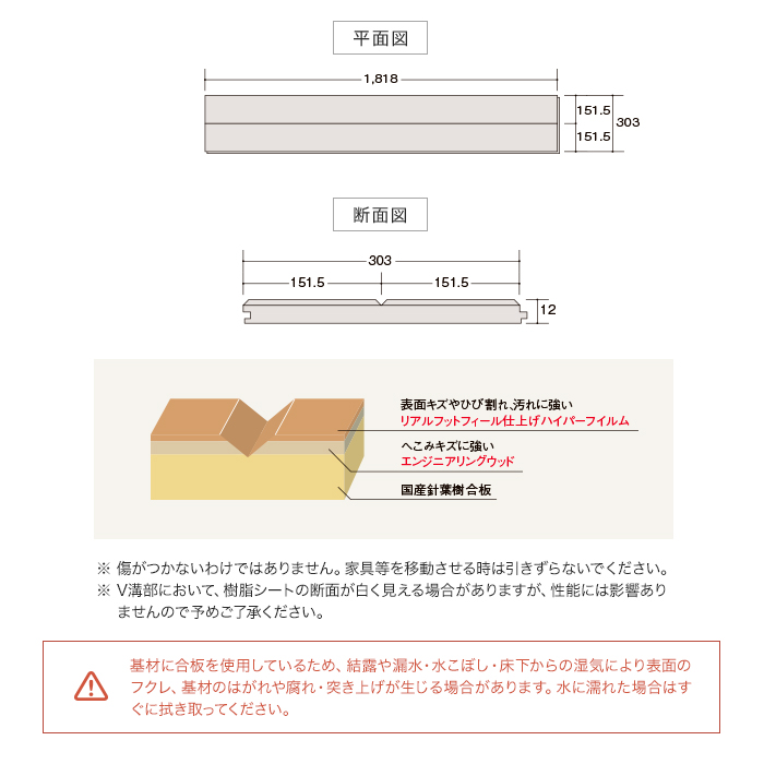 表面はリアルフットフィール仕上げで、天然木の表情と木肌を本物のように表現しています。