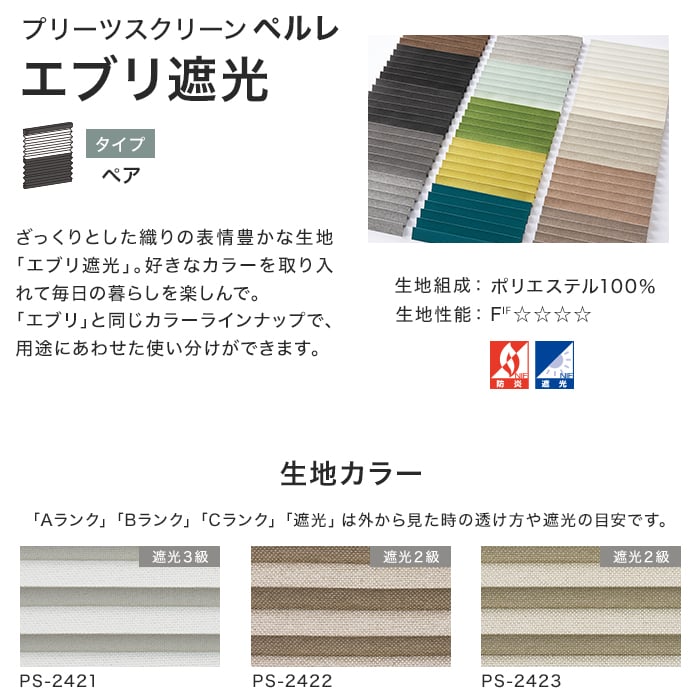 プリーツスクリーン 遮光 タチカワブラインド ペルレ25 エブリ遮光 ペア