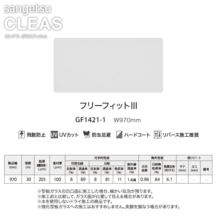 サンゲツ ガラスフィルム 透明遮熱コア70 97cm巾 GF1102-1