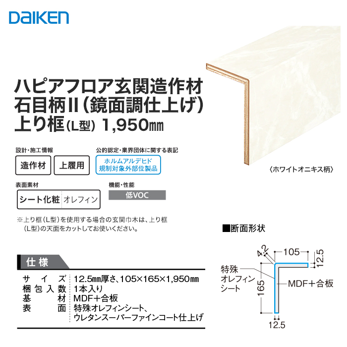 リフォーム框 DAIKEN (ダイケン) ハピアフロア玄関造作材 石目柄II 上り框(L型)(鏡面調)1950mm