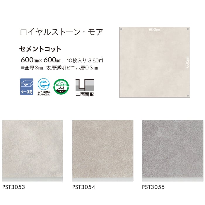 「フロアタイル 東リ ロイヤルストーン・モア セメントコット 600×600 10枚入」 は廃盤のため、販売終了いたしました。