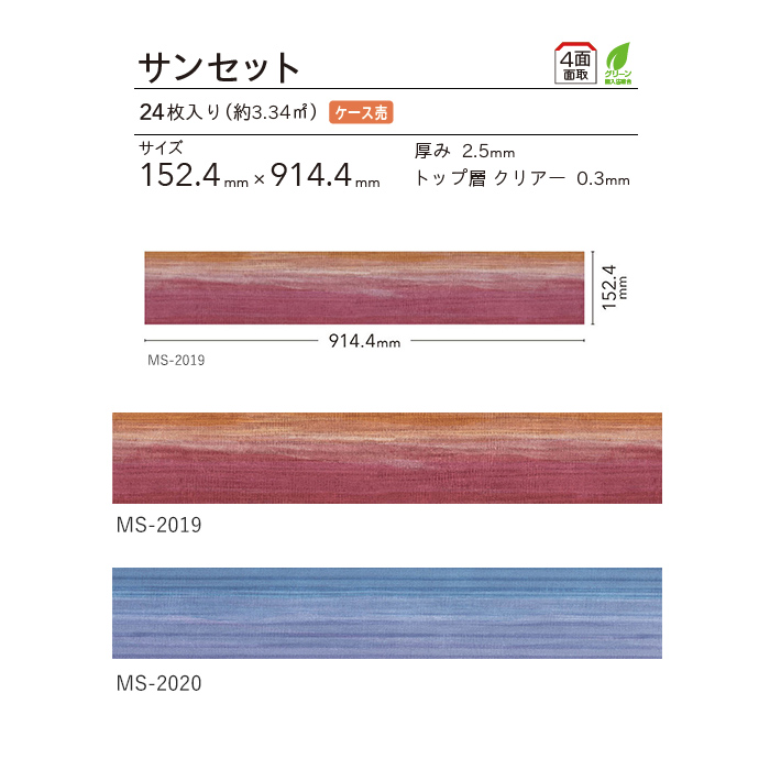 フロアタイル シンコール マットネラ サンセット 152.4×914.4×2.5mm 24枚入