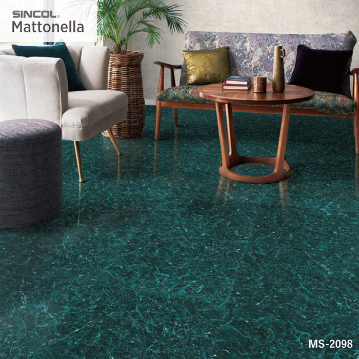 シンコールの複層ビニル床タイルです。落ち着きのあるグリーンのマーブル柄が、ワンランク上の高級感を演出します、