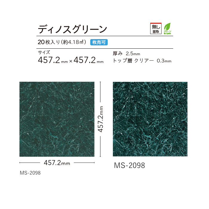 フロアタイル シンコール マットネラ ディノスグリーン 457.2×457.2×2.5mm 枚売り
