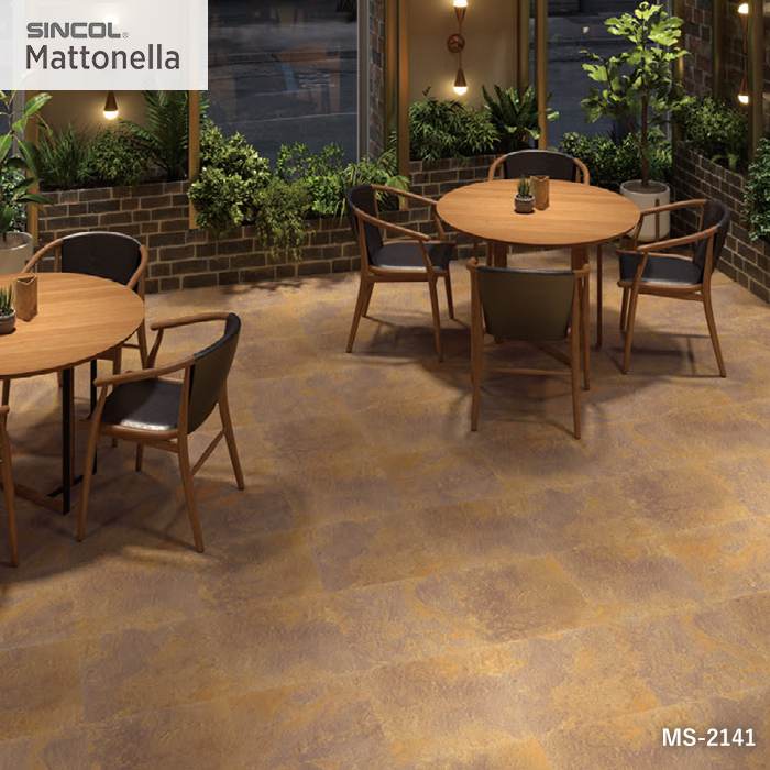 シンコールの複層ビニル床タイルです。アンティークな雰囲気を醸し出す石目柄は、上質な空間を実現します。