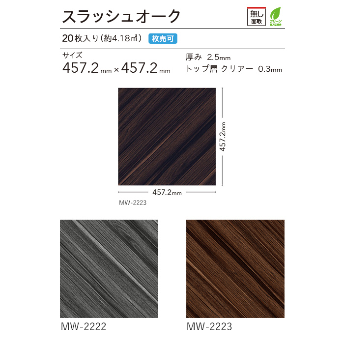 フロアタイル シンコール マットネラ スラッシュオーク 457.2×457.2×2.5mm 枚売り