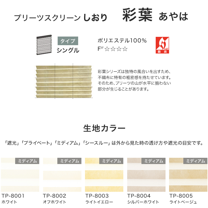 プリーツスクリーン TOSO しおり 彩葉 シングルスタイル
