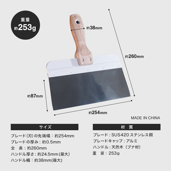ステンレス地ベラ 9寸(270mm) 厚み0.6mm 壁紙・クッションフロアの施工道具