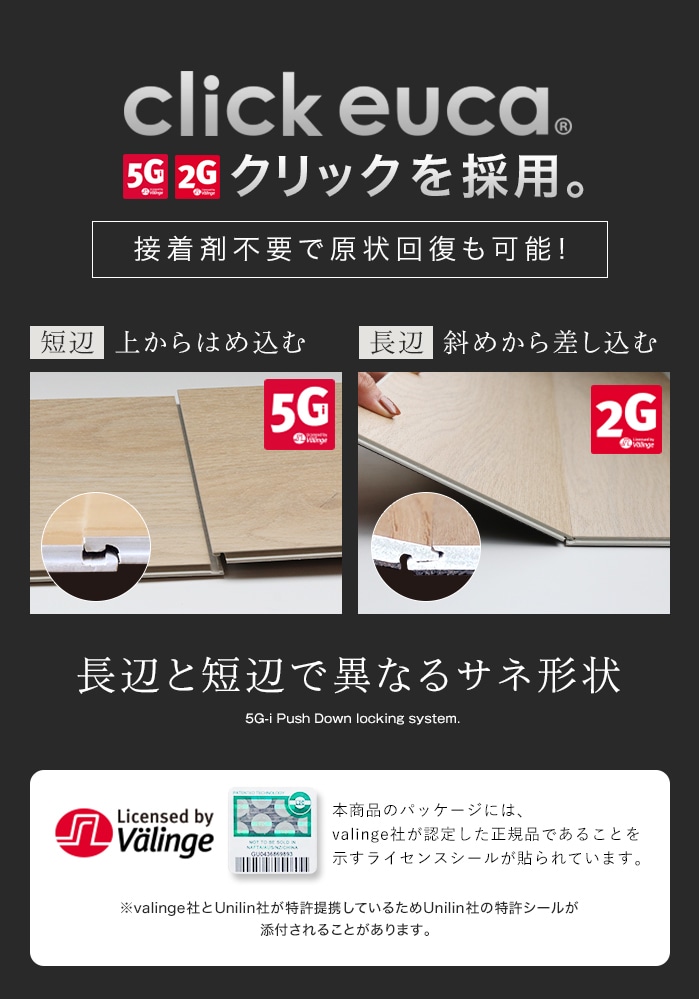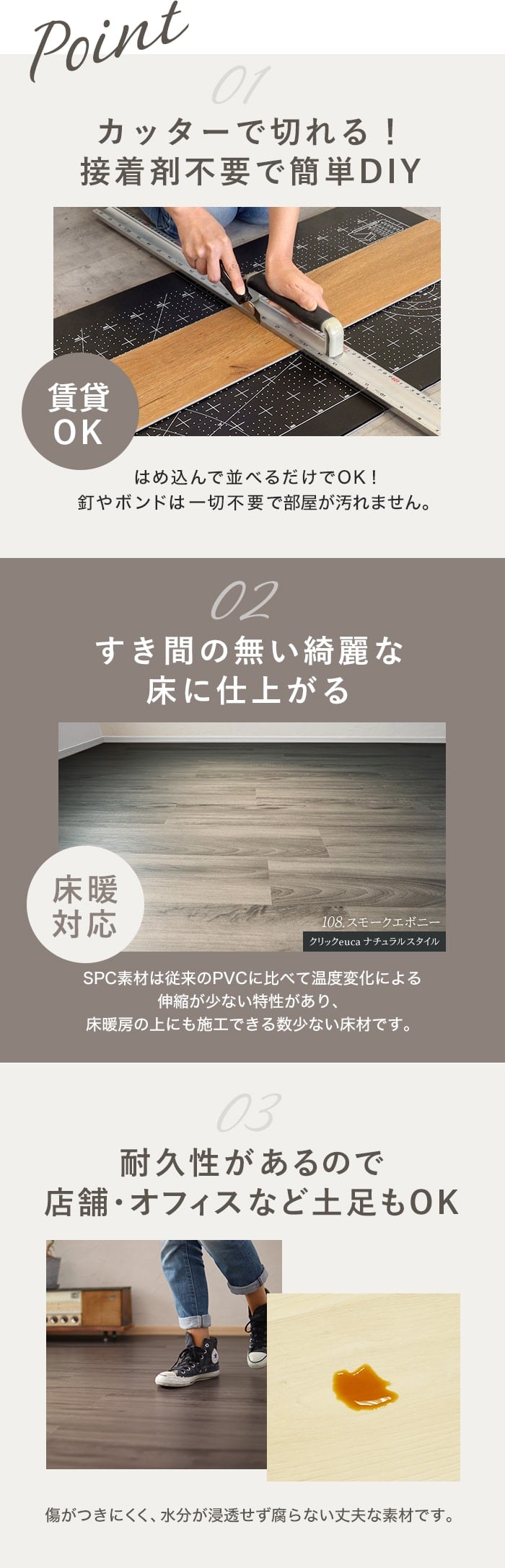 【西濃運輸便】はめ込み式フローリング(フロアタイル) クリックeuca ナチュラルstyle 5mm厚 150mm×935mm 8枚入り 約1.1平米