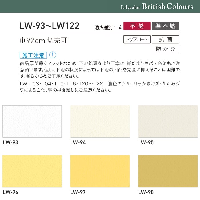 壁紙 のり無し リリカラ WILL British Colours 巾92cm LW-93~LW-122