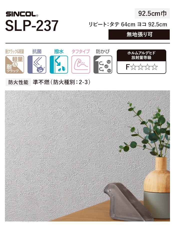 「壁紙 のり無し シンコール SLP-237 (巾92.5cm)」 は廃盤のため、販売終了いたしました。